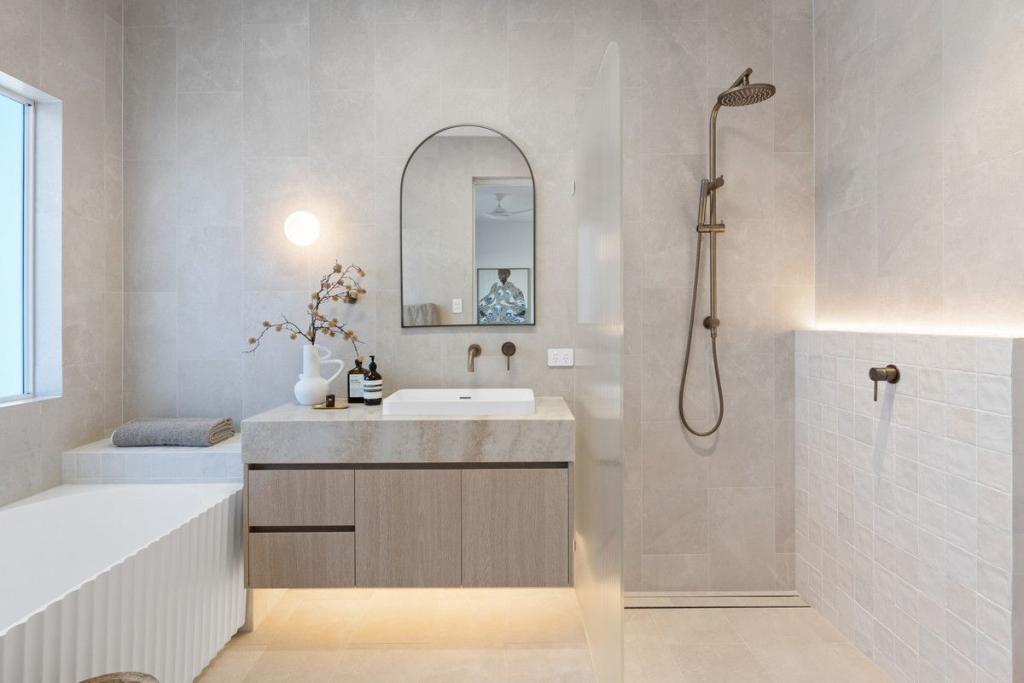 Across the bathrooms, we installed premium plumbing layouts that support the curved walls, custom vanities, and textural finishes showcased throughout the home. From concealed pipework to precision-aligned tapware, every element was designed to deliver reliable functionality without compromising the clean, airy feel of each space.